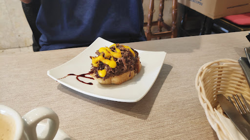 Read morePequeño local con escasas siete mesas más terraza. He comido el menú de mediodía y es correcto, sin más. También hay tapas de buena elaboración y servicio de vino por copas, y se puede pedir de menu un sólo plato acompañado de dos tapas o una ensalada (no cuesta la mitad pero puede venir bien si no se tiene mucha hambre). La comida bien elaborada y buena presentación, pero me esperaba algo más por el precio del menú. Por ejemplo el timbal de bacalao ajoarriero, tenía más patata que bacalao, y la tarta de queso estaba muy buena pero era media ración, muy escasa. El servicio es amable...