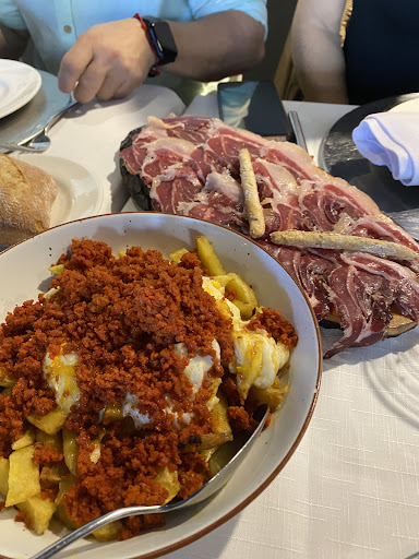 En nuestra mesa hubo quien compartió unos buenos entrantes (jamón, ventresca y chipirones) y un arroz con bogavante, correctito sin más, y otros que adicionalmente tenían huevos rotos y Segundos variados.