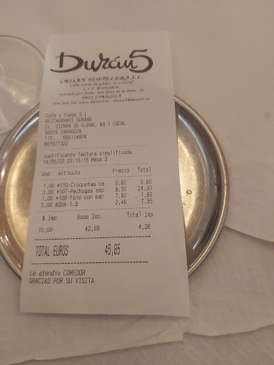 Read moreBuenos días, estuve comiendo allí con mi familia y mi experiencia personal no ha sido buena. En primer lugar, no os fiéis de la carta que aparece en la web, están súper desactualizados los precios. Fui con mi plato escogido de casa y al llegar allí, pregunté, y me dijeron que valía 5€ más de lo que ponía allí. Por otro lado, soy celíaco y supuestamente tienen muchas opciones sin gluten. Pues bien, pedí la hamburguesa Durán 5 y hubiera sido un detalle el decirme que no me van a servir las patatas porque hay contaminación cruzada. En vez de eso, mi sirvieron medio plato. Además, supuestamente pedí una hamburguesa, también me hubiera gustado saber que la opción sin gluten era poner el pan congelado del Eroski pero sin descongelar, medio frío. Podían haberlo pasado un poco más por calor y haberme dicho que la opción sin gluten de hamburguesa no existe, que es un bocadillo mal hecho y plásticoso. Para terminar, mancharon buena parte de la camisa de mi madre con aceite. Espero que salga. Por favor, no sé pongan medallas de que es un lugar apto para celíacos cuando te cobran 2€ más por un pan sin calentar,sin opción a patatas y sin avisar de que no las iban a poner. No repetiré. A tu respuesta diré que efectivamente, menos mal JAJAJA la única persona agradable de ese bar era la camarera, el resto se deja ver por si solo. Tranquilo no reclamaré el ticket, para no hacerte un roto como con el...