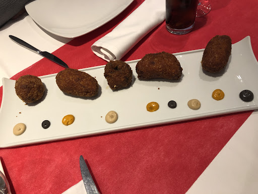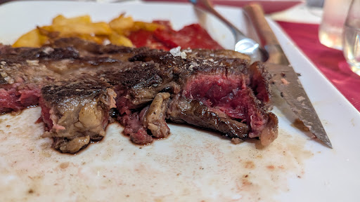 Read moreLa cocina deja mucho que desear. Arroz con tomate frito sin gusto y con el arroz duro. No saben hacer la carne a punto. El punto que me dieron era poco hecho. Las papas fritas eran aceite puro. Pedí que cocinarán más la carne y me volvieron a entregar poco hecho. La foto que adjunto es lo que trajeron al pedirles que lo cocinen más, así que imaginarse lo que sería la primera. A mí mujer también le entregaron una chuleta de cerdo que le faltó cocción. Pidió que lo cocinen más y le trajeron el mismo corte de cerdo donde la parte que ella había cortado la dejaron como estaba antes en el plato. Es la primera vez en mis 40 años de vida que me levanto de un restaurante antes de terminar un menú. Así que terminamos comiendo solo la entrada que fueron judías con 2 langostinos y unas almejas para mí (langostinos pasados y algunas almejas cerradas...) y 4 ravioles para mí mujer (ravioles sin NADA de salsa, secos por fuera). Me cobraron un menú completo a pesar de que ni mi mujer ni yo comimos postre.