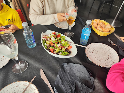 Read moreLa comida es realmente buena, pedimos unos calamares a la romana, unas gambas a la plancha, unos huevos rotos con Jamón, una pizza y medio kilo de ternasco a la brasa con patatas, nos bebimos una botella de Coto de Hayas, una Coca-Cola, una tónica y dos cervezas, total 105€ aproximadamente. Respecto a los calamares el rebozado no era excesivo y estaba crujiente y buenos. Las gambas a la plancha estaban en su punto. Los huevos rotos con jamón con las patatas cortadas un poco recias estilo panaderas estaban espectaculares. Respecto a la pizza era una auténtica maravilla, super bien hecha y muy rellena, para cuando nos sacaron el medio kilo de ternasco con patatas, la verdad es que ya casi no podíamos, pero estaba muy bueno también, las costillas eran pequeñas y estaban bien hechas y las patatas con pimientos que pusieron de acompañamiento muy buenas también. La verdad, un sitio para repetir y...