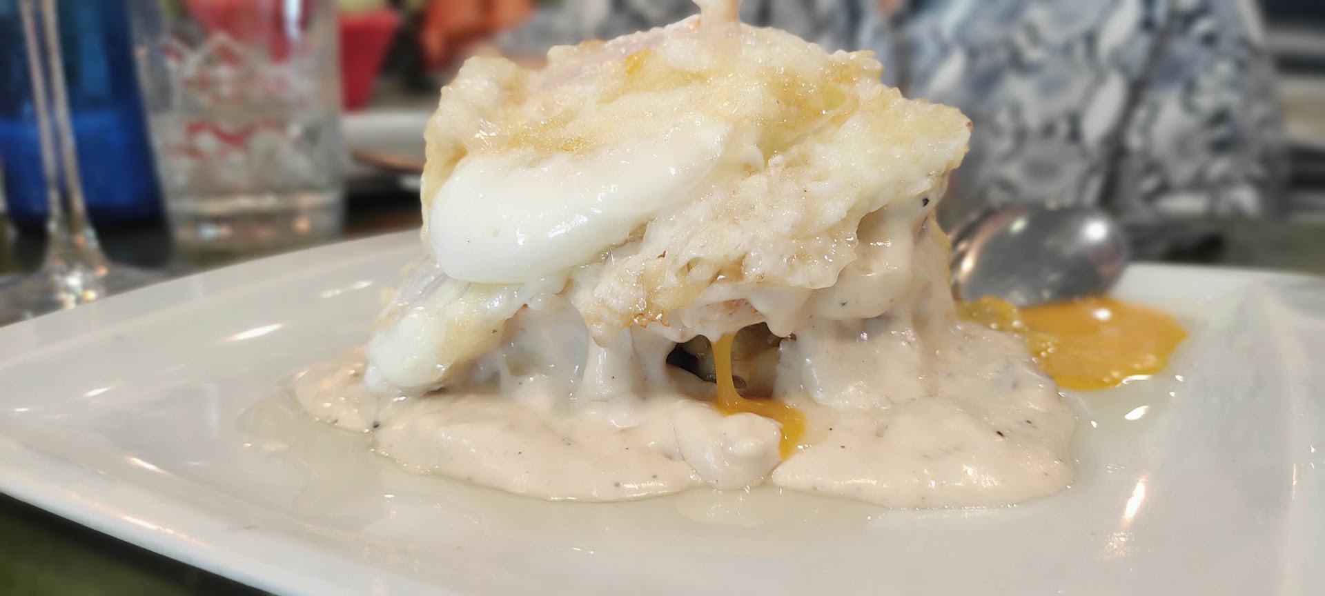 Chipirón con alioli (especial), muy bueno. Y para finalizar el desfile de platos: los huevos rotos... madre mía, ¡Qué "güevos"! Reconozco que echaba de menos que los dos huevos que llevaba encima tuvieran la yema líquida 100%, y no era el caso. Pero el sabor del conjunto no desmerecía ese detalle.