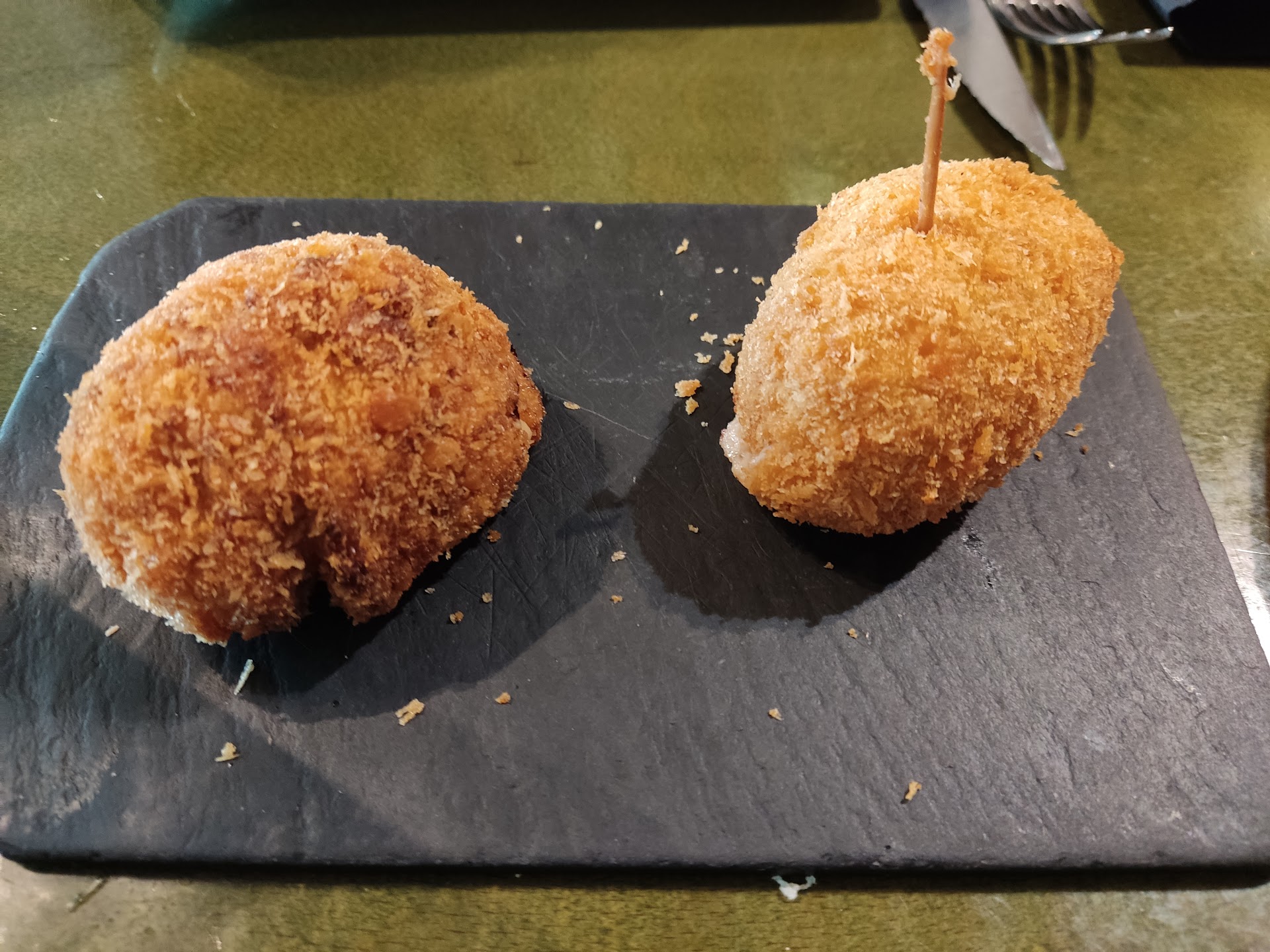 Las croquetas son para ponerlas en una vitrina. ESPECTACULARES. La de gambas y la de jamón ibérico. No te podría decir cuál estaba mejor. El "Guardia Civil" posiblemente el mejor que he probado. El cazón adobado, presentado de manera muy original es muy sabroso, nada seco. De sabor buenísimo.
