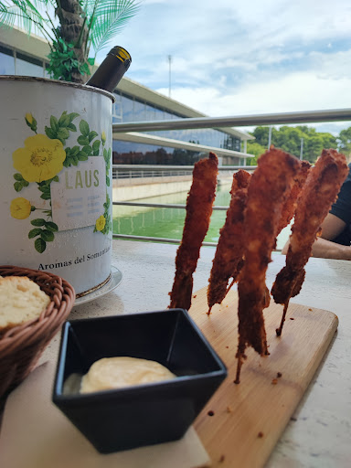 Read moreEl sitio merece las 5 estrellas tanto por sus instalaciones como por la relación calidad precio de su carta. El restaurante se ubica en un pantalán sobre los depósitos de agua. Está ubicado en el parque de la ribera del canal, por lo que hay que acercarse paseando. Lo más cerca que se puede aparcar es en Marcelino Álvarez. El personal es muy atento y manejan una carta no muy extensa pero bien trabajada. Punto positivo!!! Puedes pedir carta o menú. Si quieres menú tienes que reservarlo con anterioridad. Punto negativo!!! Nosotros fuimos a la carta. Pedimos varios platos a compartir y luego la fideuá. Comento la comida: Croquetas: la ración son 4 croquetas. Podían haber sido 6, la verdad. Están muy muy buenas. Ensalada de ventresca. Bien correcta. La ponen con algo de lechuga. En mi opinión le sobra el verde. Chipirones chilly. Muy bien la fritura y el rebozado. Los recomiendo. Langostinos rebozados. Muy buena ración en todos los sentidos. Juraría que los langostinos son frescos o al menos no es un langostino rebozado industrial. Recomendables!!! El tataki de atún lo más flojo. Posiblemente se deba al corte y a la necesidad de congelación previo. Sin textura ni sabor. No lo recomiendo. Fideuá. Como habíamos tirado de raciones pedimos la fideuá para dos para los cuatro. Cantidad generosa y muy muy buena. También totalmente recomendable. Todo eso con cervecitas previas y una botella de garnacha centenaria por 30 € no llegó. Sin duda un sitio para volver. Quiero señalar lo negativo de los aseos. Se encuentran en muy mal estado y no había jabón. Creo que precisan un lavado de cara, sobre todo porque el...