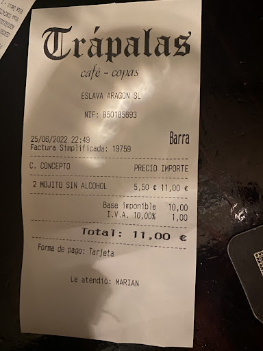 Read moreMuy caro . Pensaba que podían preparar más cócteles sin alcohol por lo que leí pero no , lo cual estando embarazada solo podía elegir tomarme un San Francisco sin alcohol o un mojito sin alcohol, el cual para ser un sprite con azúcar y menta me parece una pasada 5.50€ Cuando por ahí me suelen cobrar 3€ . La mesa estaba coja lo cual cada vez que iba a beber se me salía hasta la bebida . La mujer que parecía la dueña maja , buen trato por lo general pero decir que cada uno bebe lo que quiere … no señora … míreme … voy con un bombo bebo lo que puedo , claro que me gustaría tomar un gin tonic pero es lo que hay , por eso busco sitios que creo que tienen posibilidades sin alcohol aunque luego sea que no y me...