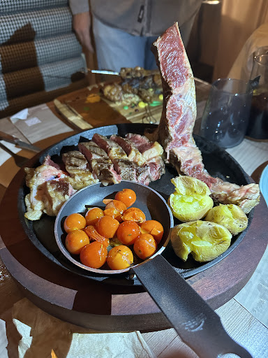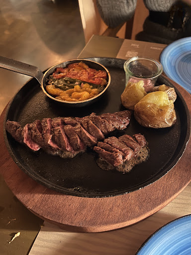 Ahora, lo esencial en un restaurante: la gastronomía. Fuimos específicamente por la carne de bisonte y canguro, pero lamentablemente ya se había agotado. Afortunadamente, nos ofrecieron el estofado de cebra y el plato de canguro.