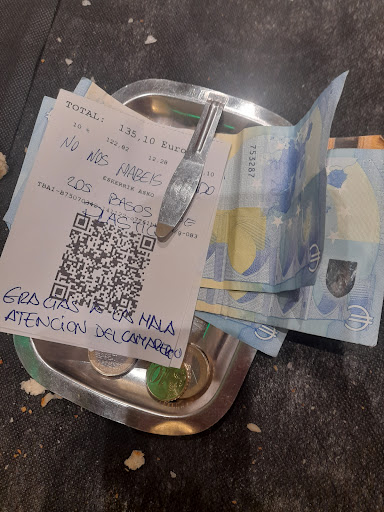Read moreVASOS DE PLÁSTICO PARA CENAR??? NI QUE FUERA FIESTA VASCA. Hace un tiempo era muy fan de este restaurante, me daba igual pagar porque la atención, comida, servicio de cubertería y vasos era excelente pero creo que debería de bajar los precios o bien cambiar el personal, ya que el trato a sido DE VERGÜENZA. Hemos ido tras mucho tiempo y me voy muy DECEPCIONADA. Tras pedir un vino y un zurito para hacer tiempo mientras llegaban el resto de comensales, he decidido devolver el vino por que no era de mi gusto y NO PASA NADA POR ELLO POR QUE ES CUESTIÓN DE GUSTOS Y LO HE PAGADO ANTES DE SENTARNOS. El problema fue cuando estábamos todos en la mesa y nos han traído copas con el fondo rojizo, llenas de cal y con pegotes. Hemos pedido que nos cambien las copas por favor y es de chiste, porque nos han vuelto a traer MÁS DE LO MISMO. TRAS VOLVER A EXIGIR QUE NOS CAMBIEN LAS COPAS, NOS HA VENIDO EL CAMARERO Y EN UN TONO MUY DESAGRADABLE NOS HA DICHO "SI PREFIERES TE TRAIGO VASOS DE PLÁSTICO" QUE SEGURAMENTE ESTARÁN LLENOS DE POLVO. TENGO LA PENA DE NO FOTOGRAFIAR LAS COPAS. PERO OS DEJO LA CUENTA PARA VALORAR EL PAGO (PALO) QUE HEMOS PAGADO TRAS CENAR CON MIRADAS DESPECTIVAS DESDE LA COCINA Y COMENTARIOS DESDE LA BARRA, QUE NOS HAN QUITADO EL HAMBRE. LA PRÓXIMA VEZ NI VAMOS. TENIAMOS QUE HABERNOS LEVANTADO DE LA MESA Y MARCHARNOS.