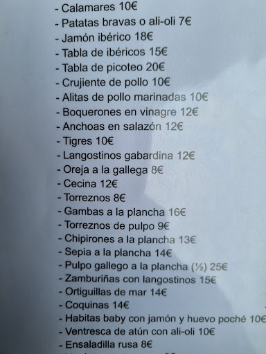 All the Tapas were really tasty, hot and freshly made at this time of the day. Prices are on the lower end. We had three glasses of wine each and all the Tapas and raciones. Came in under 50 Euros for everything.