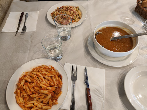 Read moreWith wine and three courses this came to about £35 per head. This is not cheap but quality, presentation, portion size, friendly and efficient service, we’re all up there. The staff were all women, mostly older. They knew their stuff and things were all just so. My fish soup came in a large soup tureen and was enough for three. The large crusty white rolls were excellent. My wife and a friend had foie gras with quince jelly. I then had grilled hake that was cooked to perfection and I shared a huge mixed salad of white onion, lettuce, olives, sliced tomatoes, grated carrot and cabbage. Less welcome were the canned asparagus, tuna and peas. This was followed by plum tart, crème caramel and an enormous splodge of cheesecake, all first rate, teas and a cortada coffee. A...