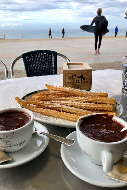Why not get as close as you can to the beach while still eating a churro with hot chocolate and enjoying the sunshine and local surfers.