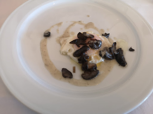 No sé lo que pedimos pero según pedíamos nos decían "pues te voy a traer otra cosa" lo que nos hacía mucha gracia con el chico que nos atendía que era un tío encantador. Nos sacaron un primer plato con un huevo de caserío adornado de marzuelos cogidos por ellos mismos que estaba delicioso a morir. Luego nos pusieron un plato de lubina salvaje divina de la muerte y unas kokotxas de bacalao frescas como nunca había probado nada igual (y de pescado mi aita sabe un montón porque es medio pescadero).