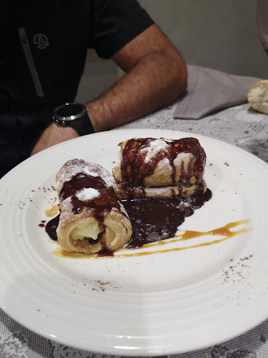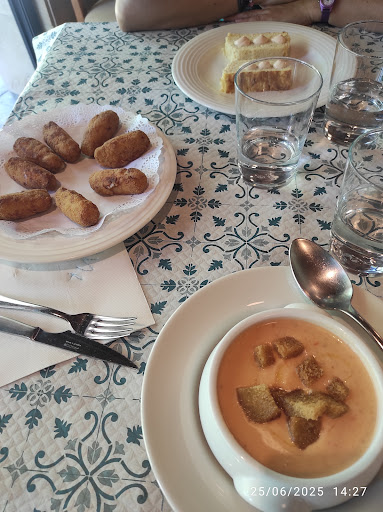 Hemos estado comiendo el menú del día entre semana. El sitio tiene un comedor bonito y la atención buena. Pero la comida ni fu ni fa. Por 16€ no está mal pero esperábamos mucho más. Alubias buenas (tampoco para echar cohetes) y ensaladilla rusa mediocre. Pollo en salsa que no estaba del todo mal y redonde de ternera al horno seco no, lo siguiente. 3 filetes finos a más no poder. Los postres (al tener pastelería a la venta) esperábamos mucho más. Para tener panadería, pan muy mediocre. Flan de café pasable y tarta de queso simplona y las he comido mejor de compra. No sé por qué huele a parrilla cuando entras si luego no ofrecen nada a la parrilla. Para no volver porque no deja poso para bien. Podrían poner comida con...