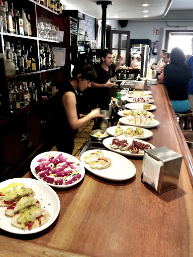 Read moreUn restaurante de menú correcto. Tuvimos la mala suerte de llegar con la sala llena, con bastantes mesas por atender así que...los primeros veinte minutos fueron simplemente de esperar incluso a que...nos saludaran y nos trajeran al menos el vino del menú. Tres camareros pero no daban abasto. Pasados esos veinte minutos por fin nos saludan, nos toman nota y poco a poco se va normalizando el asunto... Probamos sus alubias y su ensalada de tomate de Marquina. Las alubias buenas tirando a muy buenas, muy buen sabor, intenso y dejan la cazuela y puedes servirte tú mismo. La ensalada es sólo de tomate y sin embargo más que suficiente: tomates con sabor de tomate...Muy, muy buenos. De segundo un entrecot normal, con patatas correctas y un bonito seco pero que se nota que debió ser bueno antes de hacerlo de más. La salsa piparrada buena. El rioja Luis R. muy discreto, de maceración carbónica...No nos gustó. Poco a poco mejoran el ritmo de atención y al final la cosa acabará razonablemente bien. Flan de queso bueno y un melón correcto, aunque le falta dulce. Un menú de 12 euros (2014) muy correcto. El jefe nos dice que para el café y pagar hay que ir fuera, a la zona del bar...cosa que siempre nos parece muy incorrecta. Al menos uno de los camareros se disculpa amablemente por la tardanza en darnos de comer. Agradable su terraza interior para tomar el café aunque unas manos de barniz...le irían bastante bien a la pared de madera del restaurante. Un...