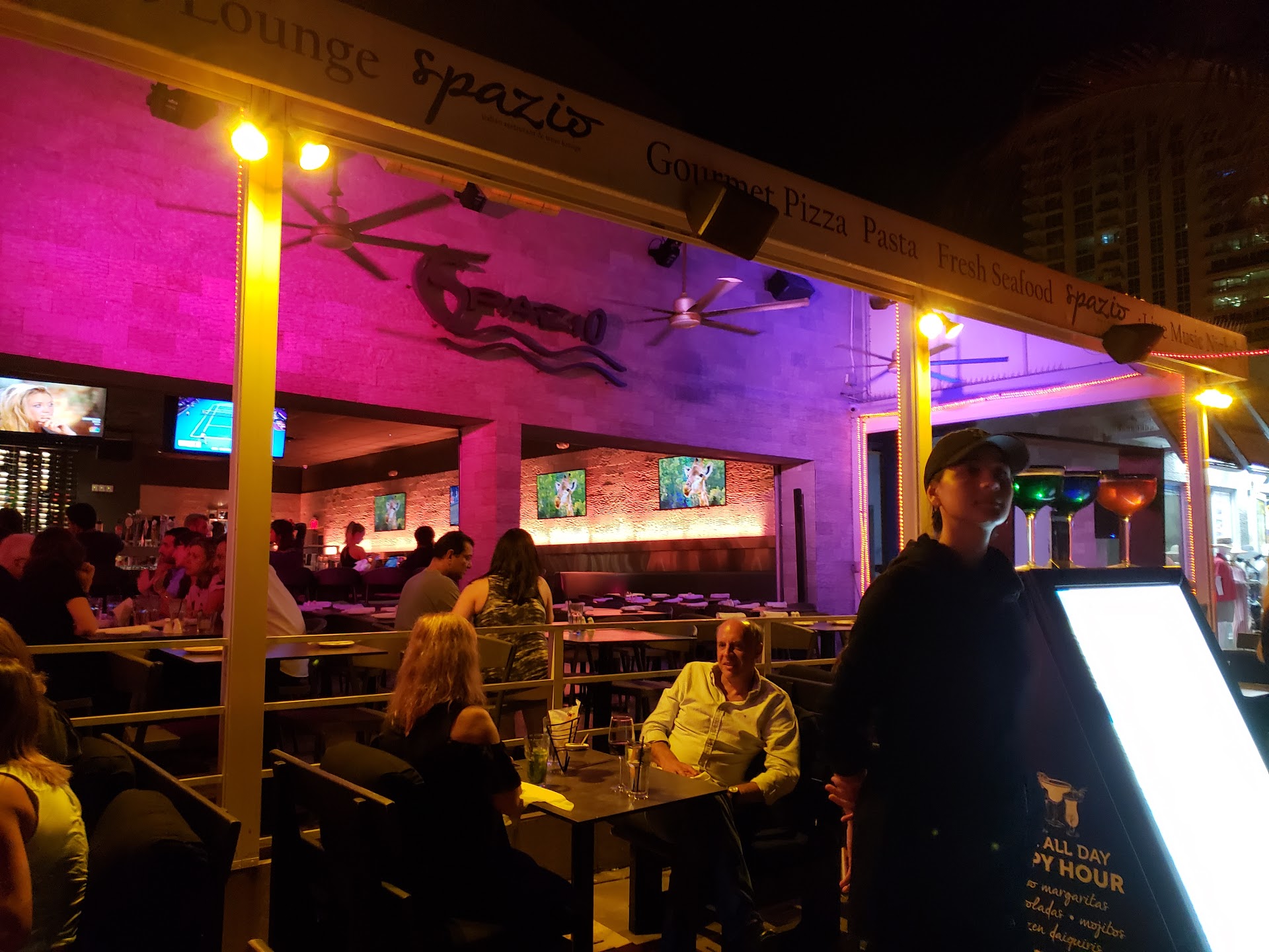 Read moreI recently had the opportunity to eat at Spazio on the Fort Lauderdale Beach strip. It is next to the historic Elbo Room on A1A. I was there on Tuesday, January 4 2022, the last full day of my recent trip to Fort Lauderdale. We decided to try Spazio for late lunch that day. Someone was handing out 10% off discount cards on the street. Spazio is an Italian restaurant with a full menu of appetizers, salads, entrees, pizza, desserts and drinks including mixed cocktails, beer and wine. It has outdoor seating with good views of the beach across the street and a great place to people watch. It also has indoor seating. It was not very busy so our server appeared fairly quickly. He was definitely a salesman and was trying to get us to get the ‘buy one, get one free’ drinks. These were very large margaritas but if I remember correctly this would cost about $40 for about 50 oz of margarita. I opted for a simple mango/strawberry daquiri and chicken alfredo. My lunch partner opted for the chicken alfredo with gluten-free pasta and a pina colada. Interestingly enough, garlic was NOT part of the normal seasoning for this dish so my lunch partner asked to have it added. I took my dish without garlic just to see. We split a caprese salad. The caprese came right away and was pretty tasty with the fresh mozzarella. The olive oil was just all right. My daquiri was also good. The meals came in short order. My lunch partner said that her meal, with the gluten-free pasta, was tasty except that the chicken was overcooked. I on the other hand, was not as happy with my meal. Fettucine alfredo is my favorite Italian meal and Spazio missed the mark. The fettucine was overcooked. The pieces of chicken, pan-seared, were hard and without flavor. The pieces were so hard that they were difficult to even cut with a knife. The parmesan cheese sauce in the dish has little flavor and as I said before, we were told that the dish was made without garlic. Luckily there was salt and pepper on the table but who has ever heard of Italian food without garlic. So, service was good. The alcoholic beverage was good. My entrée was NOT good. The appetizer was decent. I loved the location and the outdoor seating. Now the meal came to $96 without tip minus the 10%. After that a “serv. Charge” of $14.40 was added to the bill and this WAS NOT to cover the usual tip. It was not disclosed by the server and it was not disclosed on the menu. I am not a satisfied customer. Should I give Spazio a second chance on my next trip to Fort Lauderdale, I will not take a chance with their pasta and will most likely opt for the pizza, ask about the "service charge” before I order and if there is one, I will probably be walking away. Just my humble opinion but I am pretty fair with my reviews and I have done over 200 reviews of restaurants, hotels and other places that I have visited or services that I have...