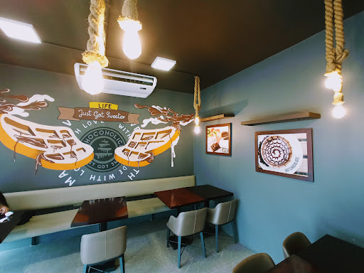 A nice and comfy place with a pleasing ambiance, decorated with eye-catching art and paintings that give off chocolate vibes. You can choose to dine either upstairs or downstairs, as there are ample seating options available.