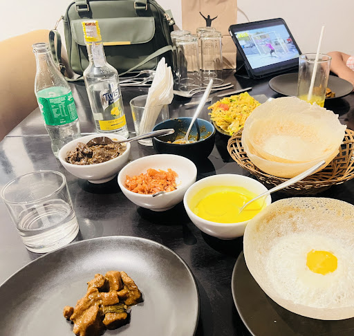 Read moreWent for the hoppers ! It was really good the platter comes with one egg hopper and 3 plain hoppers and sambol for a little less than Rs500. Hoppers taste really good so is the sambol. The star of the night for me was the black pork curry. Loved it. I think it's the best for hoppers. We tried Pani Appa and Hakuru Appa. Seems to be they have taken the meaning . The Pani Appa had treacle drizzled inside of mixing it in the batter itself. Tho it's a nice if still prefer the original. Hakuru Appa had little crumbs of jaggery in the middle and to the heat of the hopper it was sorta melted. I really like it. For one set you get 3 Pani Appa or Hakuru Appa. I got their condensed milk tea, it was not up to my liking but I'm sure most of you like a strong tea with milk so I'm not complaining.