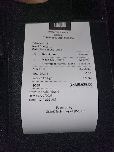 Read moreEskobar is easily one of the most unique spots I've visited in Colombo. You’re transported into a moody, vintage-inspired world that feels like a scene from a 1920s jazz club. The ambience is absolutely spot-on — dim lighting, plush seating, and live jazz that sets the perfect tone for the evening. It’s intimate without being cramped, stylish without trying too hard.
