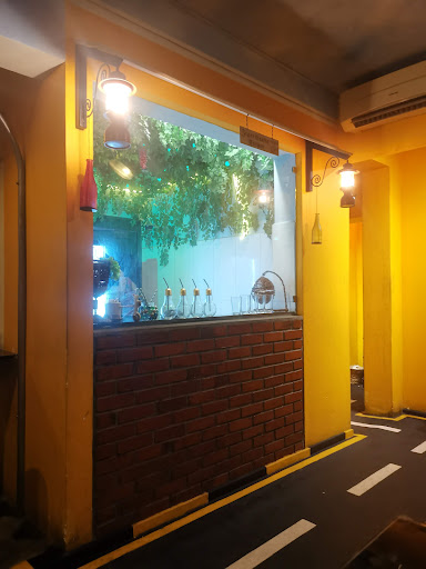 Ambience : A small place with seating for about 40. The place is designed to a ‘street theme’ and seating to lighting to deco, are put in place to fit the theme. For an example, Barrels used as seats, street light type lights and zebra crossings drawn on the floor. Downside is though, seats aren’t comfortable to sit and enjoy a long meal.