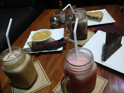 Upon recommendation, we tried their Fish pot pie (rs. 650). It was so yummy, very hot, freshly prepared tummy filling dish and I would recommend for everyone. The black beauty in the picture was Death by chocolate(rs.450) So gooey, so chocolatte and thought we'll be dead after this overload. We got a large slice of Apple pie (rs.450). The pie crust was thin and flaky and the paste was nicely mixed with stewed apples, nuts and raisins, topped with cinnamon aroma.