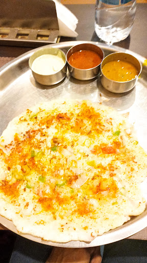 Good food, authentic south and north Indian Bad service, unattentive staff, lot of ignoring Okay atmosphere, dining area too cool but architecture is pleasant and attractive