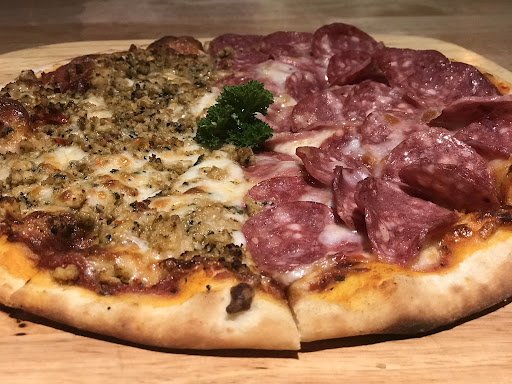 Food : We ordered chicken bites for starters, a medium pizza with half beef pepperoni and half basil chicken, an apple soda and a passionfruit soda as drinks