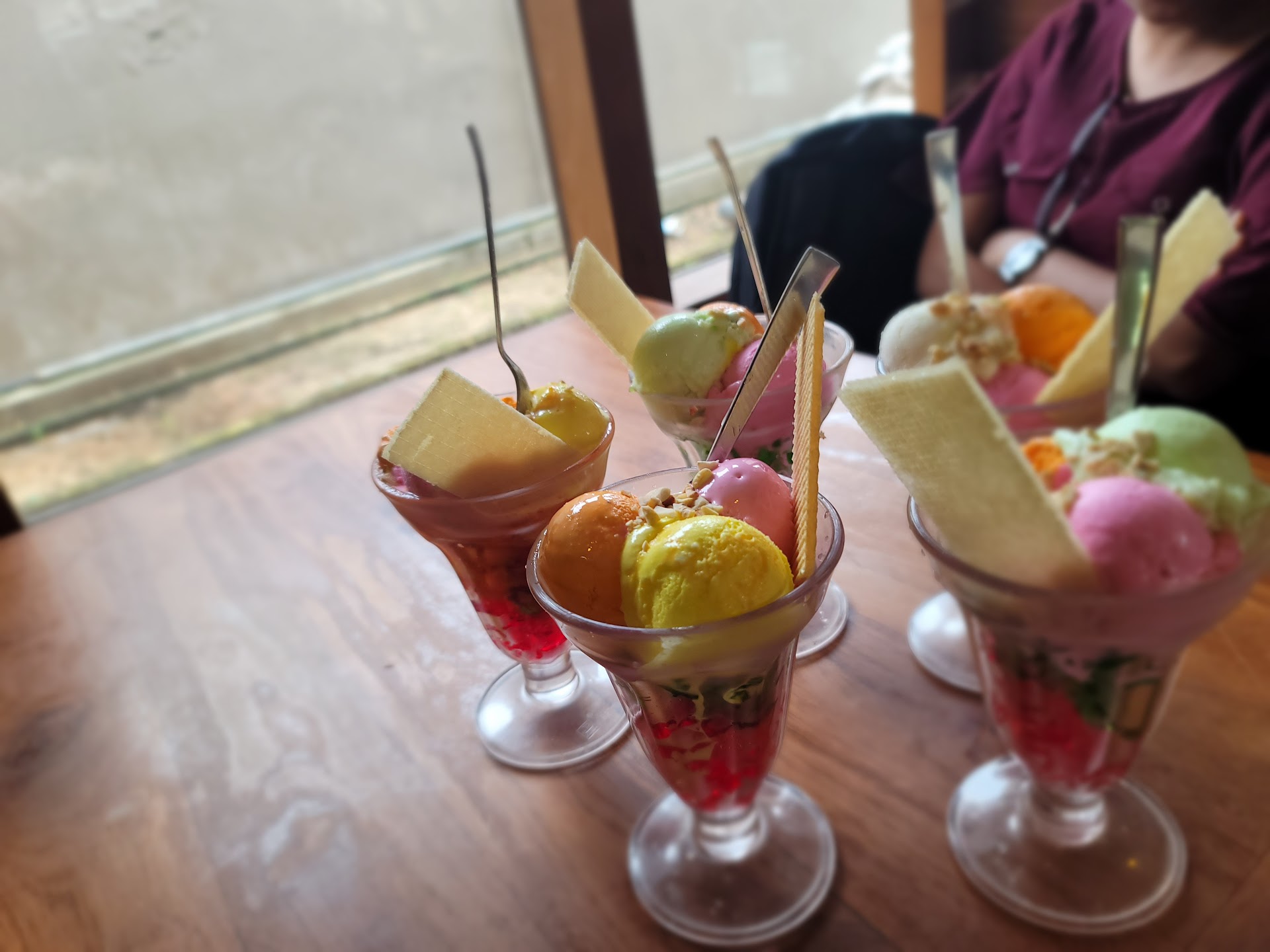First, letās talk about the ice cream. I tried a couple of classic flavors ā chocolate, vanilla, and strawberry ā and they were fine. Nothing bad at all, but nothing particularly special either. The texture was smooth, the flavors were okay, but it honestly tasted like something I could have picked up at a regular supermarket. For a place that seems to be branded as a must-visit local dessert spot, I expected a bit more creativity or richness in taste.