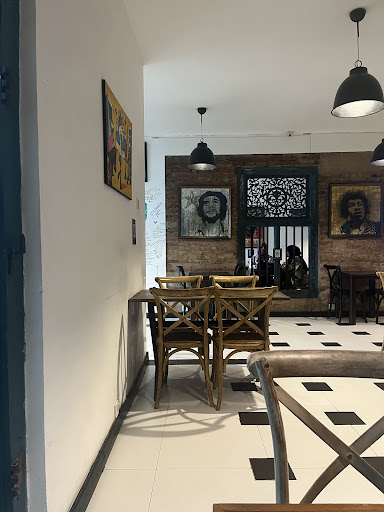 Almost hidden away under a tree on a busy road is the chic cafe. Its natural light shines through the main lounge area and there’s leather sofas and modern contemporary furniture. The interior design is infused with rock stars and revolutionaries like Che Guevara. Some of the oil on canvas are pretty bad, especially John Lennon. Jimi Hendrix fares much better!