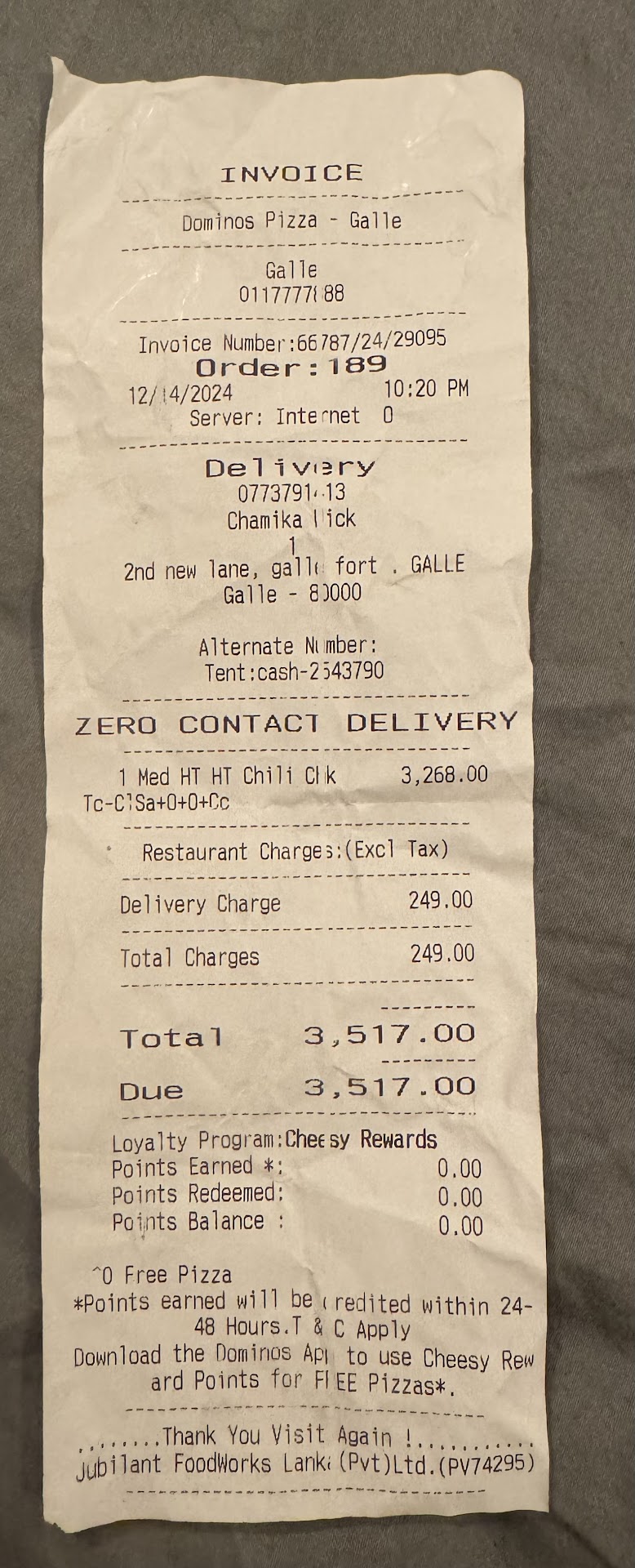 Overall, I can recommend Domino's Pizza in Galle. Whether you're a pizza aficionado or just looking for a satisfying meal, you won't be disappointed. Thank you, Domino's, for a wonderful experience! We will definitely be back for more...