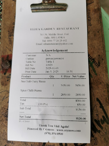 We came here for lunch in early January 2025 and ordered two dishes, having enjoyed a seafood platter the previous night at Bastille, and wanted to try another eatery. I had read some reviews of restaurants in Galle and, since we only had 1.5 days in town, decided to ask the locals I met in a cafĆ© for recommendations. Not sure if the locals were paid to say what they said, or if the chef at Elita wasnāt working that afternoon, but the food we ordered was absolutely disappointing!