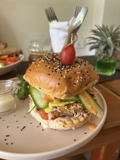 The pièce de résistance, however, was not to be found in the ambience or the decor; no, my dear friends, it was the exquisite symphony of flavors that danced upon my taste buds as I feasted upon a burger so divine, it rendered me speechless. The ecstasy continued as I surrendered to the intoxicating allure of the waffles, their sweet embrace enveloping me like a lover's tender caress. 🍔🧇
