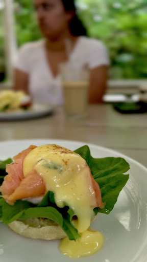 No offence to the local coffee but I was craving something more authentic. The menu was quite extensive and I ordered the eggs benedict with bacon. There was seating outside, inside and a courtyard to the rear. The wi fi was great and the music was chilled. The meal was very good. Perfect poached eggs and crispy bacon with hollandaise sauce. Garnished with watercress, tomato and served with wholesome lightly toasted bread rolls. I also ordered a lemon and mint smoothie which was divine. The prices are European prices but it was...