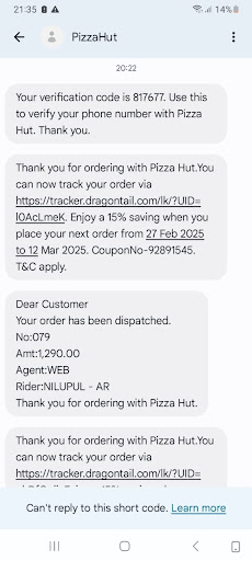 Ā Ā Ā Read moreI called Pizza Hut yesterday 29/7/2024 to place an order at 6pm. There was an issue with getting my half and half toppings. Then the guy checked with a āmanagerā and said that we can get it, this was after about 15 mins on call and just before the order was confirmed the call disconnected for some reason. Then I called from my number 771326119 and I had to spend another 10-15 mins telling this new guy that the toppings issue was already discussed and the call dropped so to confirm the order and send it. Order was placed and then we ended the call. I get a call back 15 mins later from Pizza Hut to say that the order canāt be sent cuz the outlet canāt do it??! This was now about 1 hour in total and I was furious, no Pizza, not even the order placed when the policy is to deliver in 30! What a joke! I requested to raise a formal complaint and speak to a manager or complaint handler. He then went to speak to a āmanagerā again and I spoke with Rezan or Reezan or someone who apologized for the delay that was already caused and heāll confirm the order and send it asap, ASAP. It was now 8pm, 2 hours after, I called Pizza Hut, they said my order has been cancelled!? Itās been 2 god damn hours!! I requested for another formal complaint and requested for compensation for wasting my time! My order was finally on the way to me, 2+ hours after.