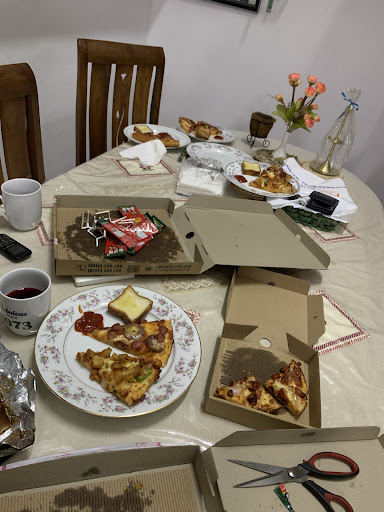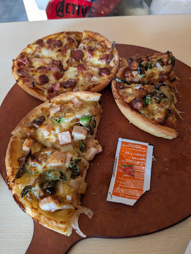Usual pan pizzas with different types of toppings. Excellent customer service. Delivery time was about 15-20 minutes. Clean and tidy place. Plenty of spaces for parking.