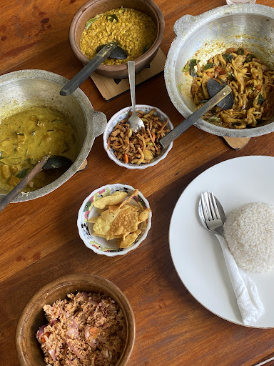 I also did the cooking class which was fantastic! It was 5000 rupees at the time and I would highly recommend it. You will make the rice curry dish with its 4-5 side curries. And itâs wonderful to see how clean the food is, itâs all home cooked and uses very little oil (except for one dish).