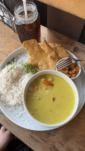 Read moreI lived nearby and this was the best option near home. Portions are big! I had coconut curry, ice americano and ice cream. I could not finish the ice cream:)) Everything was great - curry spicy but not too much, ice cream was cold, coffee - large and cold (machine ice was used). I was very pleased :) I think they have air conditioning inside, but I do prefer to sit outside and stare at the street:) Bar stools in outdoor terrace, indor they have more...