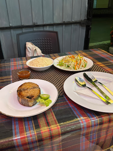 They offer home-style Shri lanka cuisine and a presentation you won't find in any fancy restaurant. I ordered grilled fish — you can choose two of three sides: salad, fries, or rice. I took with the salad and rice, and it was absolutely amazing! The rice was very fluffy and slightly sweet, the tuna was perfectly grilled, and the fresh vegetable salad with a sweet and sour dressing was delicious.