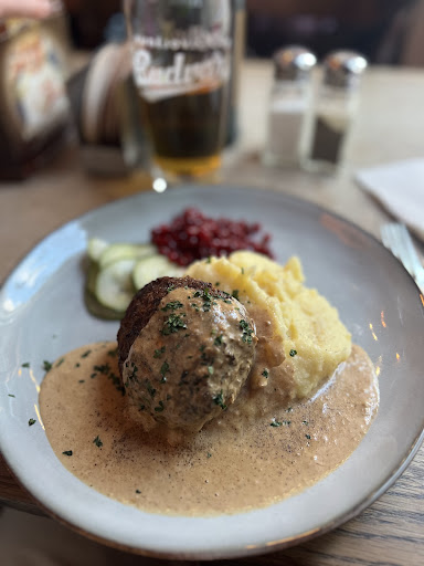 Read moreI’m a huge fan of beers so got really excited when my sambo suggested for us to have dinner here. I had the deer Wallenberg served with mashed potatoes and lingonberry while he had the double patty spicy burger as he was starving! To be honest, I was quite disappointed with my food as I expected the dish to be “better”. More sauce, more greens perhaps? Just to lift up the dish. I know it’s a husmanskost but I was expecting more. Definitely think that my sambo’s burger was the better choice with its juicy beef patties and the charred bits were really good.