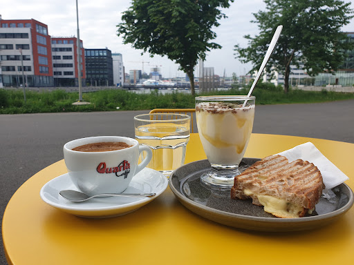 I was here couple of weeks ago here with my colleague. It’s an Italian type food place. The food I ordered was pre packed. So you just have open and eat it. I liked the taste it was good. I had not much interaction to say much about service. The place is small but on summer days one can sit outside and enjoy the see channel view. We just go to the counter order the food and get the corresponding pack. No additional things added such as Salad, coffee etc like a usual lunch place. Of course it’s a Cafe so one may not...