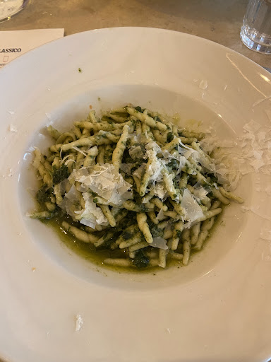 The food was just ok. We ordered the Buffala Mozzarella and the Farinata as entres. The farinata was actually the best dish of the night, with light and slightly crunchy texture. The mozzarella was strangely dry, but I accept it as it reminded me a lot of Dominican Queso de Hoja. For mains we ordered the arrabiata and the Trofie al pesto. Arrabiata wasn’t spicy at all, they just added some sliced chilis to pretend, I guess. The pesto wasn’t remarkable either. I really wouldn’t come back here for the food, it was unremarkable. On top of that, it took a very long time in between the entre and the main. The service wasn’t anything special and neither was the atmosphere. Unfortunately too noisy...
