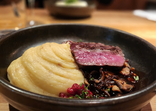 I chose to dine at this restaurant based on its excellent reviews and was not disappointed. My order started with shrimp, lobster and vendace roe served on farmhouse bread with pickled onion. Followed by delicious main course, which was loin of venison served on the creamed cabbage with truffle accompanied by potato purée with cheese and bacon and lingonberry sauce. I have ordered 2oz of Glenfiddich scotch whisky on the side to finish my dining. While I wasn’t entirely sure about the two large meat cuts hanging at the entrance, everything else—from the moment I walked in to the moment I left—was flawless. The service was outstanding: friendly, polite, patient, and impressively efficient despite a busy evening. The food itself was exceptional. Every dish was well-seasoned, perfectly cooked, served warm, and beautifully presented. The venison was simply “heaven in the mouth”—soft, delicate, and tender. It was my first time trying venison, and I can now say I’m a big fan. If you haven’t dined here yet, you absolutely should. This place deserves five stars—and the chef deserves an extra five stars for delivering a truly perfect meal. Very reasonably priced considering quality of the food and the whole service. Thank you for a...