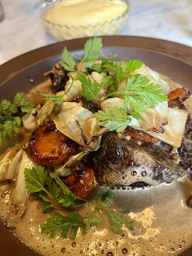 The beef tartare as a starter was flavorful, and the contrast between the lemon mayo and grilled beans and Jerusalem artichoke was satisfying, but the dish lacked something to be perfection.