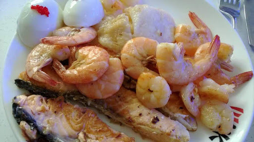 Food: They serve food like sushi, fried chicken/shrimps and asian stews with chicken, beef or pork options. There is also the option to pick from a variety of raw uncooked vegetables and meats (salmon, beef, shrimps, pork, chicken etc) which you can give a chef which will wok/cook it for you. The food is very salty and not the highest quality. The wok was tasteless. The sauces (curry, satay etc) didn't look fresh as they had started to separate. There were only 4-5 different types of sushi's left and they looked very sloppy and tasted OK at best. There was ice cream for dessert - five buckets of vanilla ice cream without anything such as chocolate sauce or sprinkles.