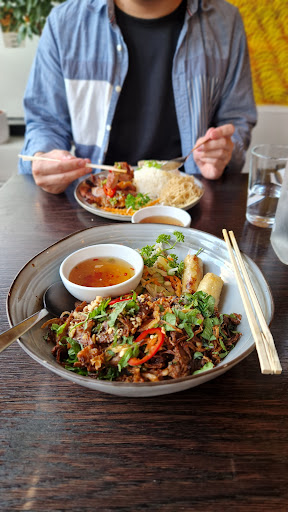 A fairly new restaurant that claims to be traditional Vietnamese. While the place looks cute, the menu is rather disappointing for vegans. Basically only one dish is available (Bun Xao, rice noodle salad) and even Summer Rolls can only be made vegan by asking nicely. Not super welcoming on that front. The Bun Xao is surprisingly nice with decently seasoned tofu and a beautiful arrangement, but served with just soy sauce is a bit of a disappointment. Though it is still good and at a price tag of 149 SEK affordable, it’s nothing I would actively come back to. When you are around the neighbourhood it’s a good option, but other than that, plenty of better Vietnamese restaurants around Gothenburg....