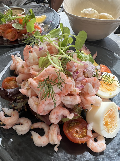 Read moreone of my favorite lunch spots on my trip to sweden. it’s a restaurant located on the outer part of stora saluhallen. we ordered the shrimp sandwich, fish soup and cured salmon. the sandwich was brimming with shrimp which was piled on top of rye bread and a herb green aioli. the soup was cream based and had 2 types of fish (which were super tender and not overcooked at all) shrimp and roe and served with 2 pieces of garlic bread. the salmon was served with mustard dip and a side of potatoes in a creamy dill sauce. everything was super fresh and service was prompt and efficient. great wines too. it was a really nice summer day so we sat outside. i highly...