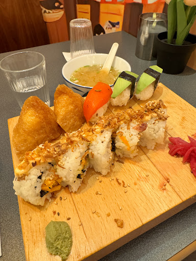 Read moreReally nice place run by lovely staff. I was a bit suspicious of the red pepper nigiri but it turned out to be slightly braised and peeled. It was the best of the combo. The rice was fresh and tasty, the only thing to improve in my humble opinion is the tightness of the maki roll. In some bites the rice was falling off because it was not pressed enough. The nigiri were excellent. The complementary miso soup was vegan, a big plus since it usually contains bonito. It was so nice and smooth. Dumplings were nice, crunchy on the outside and soft on the inside.