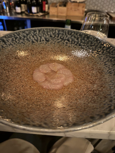 Read moreAnother restaurant has found that you can charge more for a tasting menu compared to a three course meal. This restaurant has quite decent pricing. The food can best described as Japanese-inspired with lots of soft foams and distilled oils. A lot of preparation has gone into the food. I found some dishes too salty which is fine once in a while, but It would really have been nice to have some starch to reduce the saltiness. The only starch served was a chewy slice of sourdough bread. The sorrel ice cream was very nice, but why serve strawberry jam as dessert. All Swedes go crazy for strawberries in June and the restaurant decides to make jam with an extreme amount of sugar. I think fresh potatoes would go well with the dashi stocks. I keep coming back to starch because I am hungry. Play it safe with some Japanese rice. The venue tries to replicate a faux-fancy nightclub design complete with a red carpet outside the entrance, chandeliers, and almost black wallpaper. I find it quite unpleasant. The service was friendly. I would not come back until the chef finds a more confident and personal style of cooking. There clearly...