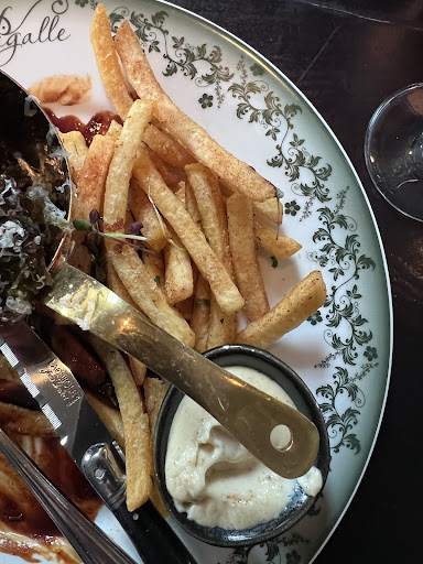 We were a group of people who had the duck as our main course and it came with fries. Not even good fries; they tasted about like what you get in a street kitchen. The duck was a bit tough. I've had duck that was prepared to perfection in other restaurants, this was not anywhere near that. I don't know what genius came up with the idea to serve street kitchen fries with duck, but maybe that wasn't the greatest idea anyone has ever had. It felt kind of like the kitchen was working on a budget and couldn't afford anything fancier.