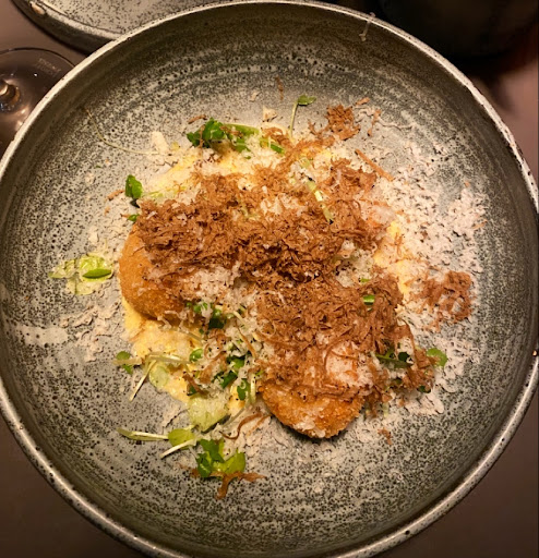 The complimentary bread, particularly the homemade hard bread with fennel and rye flour, was a delightful surprise. It was delicious. For our starter, we had the Swedish charcuterie, which was both plentiful and incredibly flavorful.