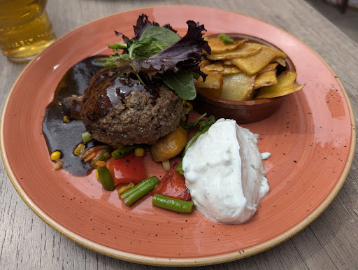 Lammekjøttkakene var saftige og godt krydret, og harmonerte nydelig med den friske tzatzikien og rødvinssausen. Skivede poteter var pent stekt og hadde fin konsistens. Oksefileten var mørt tilberedt og hadde akkurat passe stekningsgrad – et sikkert tegn på at kjøkkenet har kontroll på detaljene.