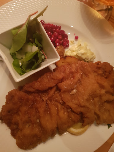 Food: absolutely delicious. Cocktail well executed. The flĂ€skschnitzel, pierogi, lammrostbiff and rĂ„biff were 5/5! Hit the spot! Definitely the schnitzel!!!! Only thing to critique was the overpriced alcohol free cocktails which were the same price as with alcohol. The dessert STP was good but not great. Service: great! Well welcomed and attended to! Funny server and good service. Atmosphere: cosy with texture all around. Old floorboards, raw woods and stone (not to mention sharing a wall with the cityâs own wall) create a warm, cosy environment. Even warm, dim (but well lit and...